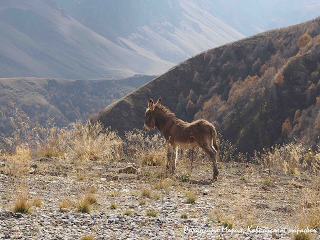 А это - горный ослик! Их там было целое стадо. Я решила угостить их хлебом, который мы взяли с собой для бутербродов. Если бы я знала, что благодаря этому хлебу ослики начнут на меня охоту!
